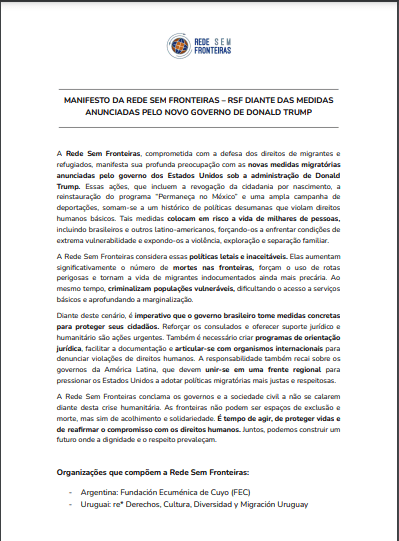 MANIFESTO DA REDE SEM FRONTEIRAS – RSF DIANTE DAS MEDIDAS ANUNCIADAS PELO NOVO GOVERNO DE DONALD TRUMP