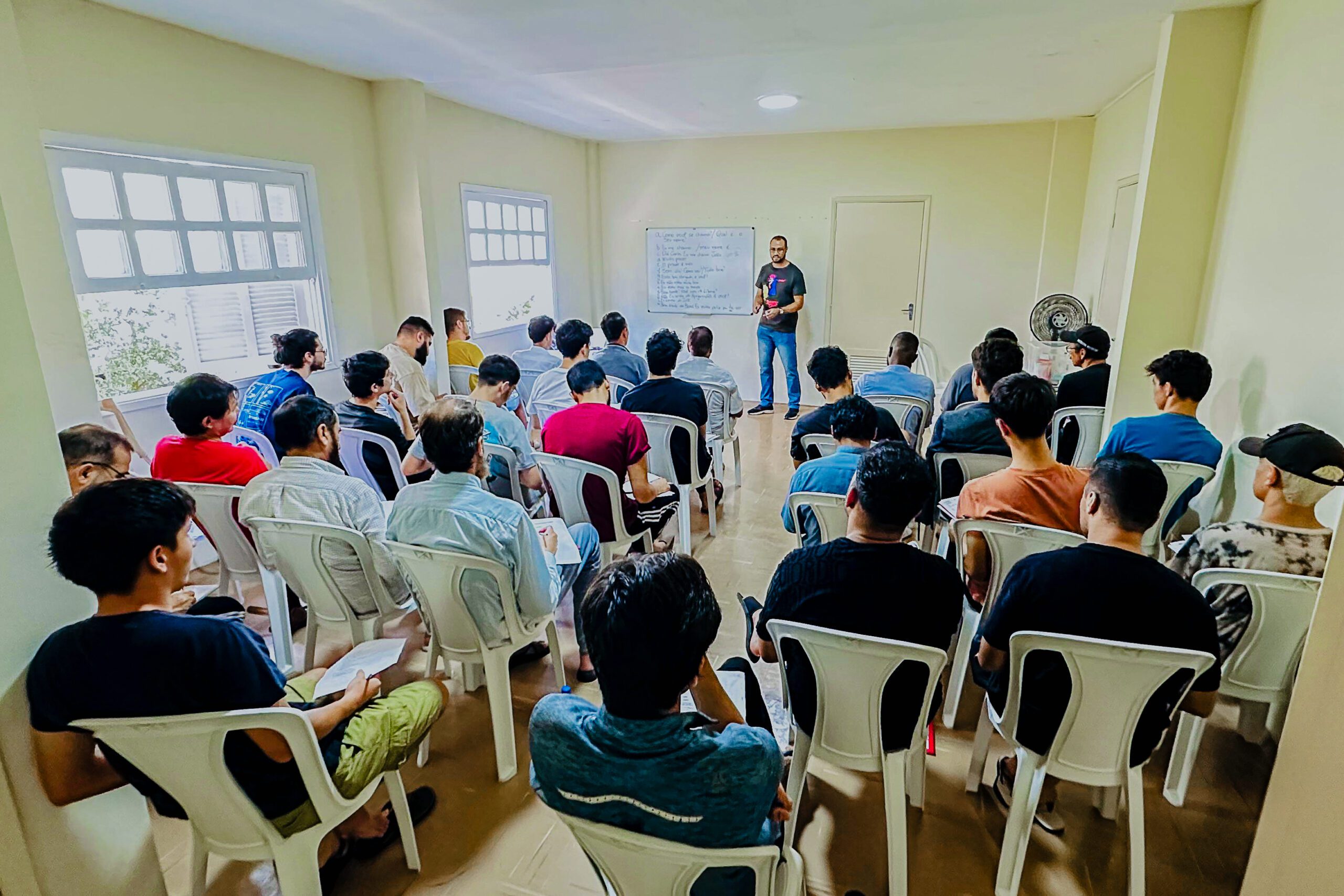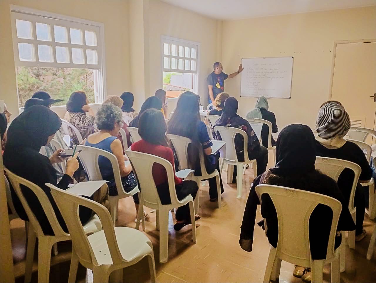 As aulas, ministradas pelo professor de Idiomas Rodrigo do Prado Rodrigues, têm como prioridade a prática da conversação, acontecem aos sábados e no momento contam com a participação de 70 moradores do Abrigo Terra Nova III que aprimoram seus conhecimentos na língua portuguesa para apoiá-los na busca de um emprego e sobretudo na garantia de seus direitos.