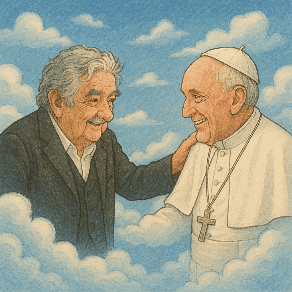 Ambos saíram do chão da pirâmide social, escalaram, degrau a degrau, postos de grandeza e prestígio, mas jamais esqueceram o solo escuro e úmido onde lhes cresceram as raízes. A exemplo das árvores, subiram ao vento livre, ao céu azul e ao ar aberto, mas sempre com os pés fixos e firmes na terra em que engatinharam os primeiros passos. Nos diversos níveis, etapas e instâncias por onde lhes tocou alçar voo – um à presidência da república do Uruguai, outro ao pontificado da Igreja Católica – descobriram que poder é serviço, dinheiro não passa de um meio e o cargo, quanto mais elevado, tanto maior o compromisso com o bem-comum.