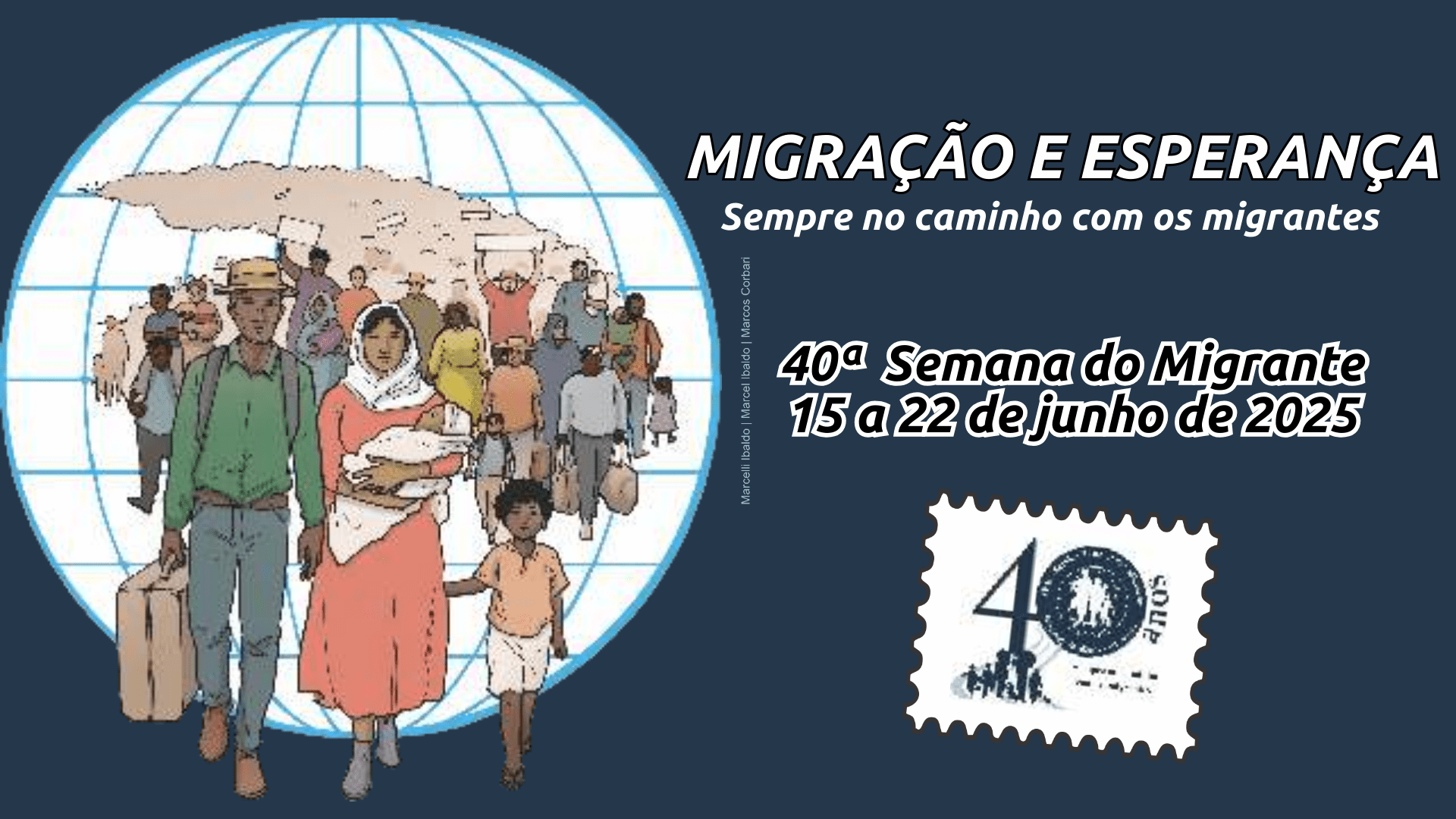 Neste ano que transcorre, o Serviço Pastoral dos Migrantes (SPM/CNBB), em parceria com outras pastorais sociais, entidades e organizações em geral, promove sua 40ª Semana do Migrante. O processo vai de 15 a 22 de junho/2025, tendo como tema Migração e Esperança e como lema Sempre no caminho com os migrantes. O evento celebra os 40 anos do SPM, fundado oficialmente em outubro de 1985. Porém, celebra igualmente as lutas, sonhos e esperanças de quem, forçado à fuga por distintos fatores, busca um novo solo pátrio.