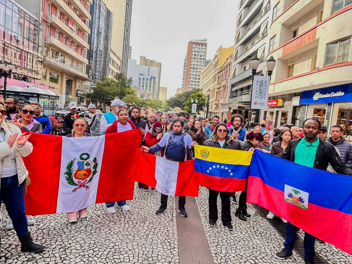 Curitiba/PR – A capital paranaense realizou a 1ª Caminhada da População Migrante e Refugiada de Curitiba, no centro da cidade, reunindo migrantes venezuelanos, cubanos, haitianos e a comunidade local. Também houve uma celebração eucarística.