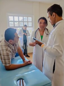 Os agentes do projeto Médicos do Mundo realizaram, no mês de junho de 2025, uma ação de saúde com os moradores de nosso Abrigo em Cotia/SP. A atividade contou com a presença de uma equipe multidisciplinar composta por profissionais das áreas de Clínica Geral, Pediatria, Fisioterapia, Odontologia, Enfermagem, dentre outros. Foram oferecidos também a oferta de vacinação e exames laboratoriais. Todos os atendimentos foram realizados nas dependências da instituição e por isso várias salas foram adaptadas, transformando-se em salas médicas, possibilitando que todos os moradores fossem atendidos com qualidade e dignidade.